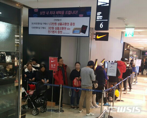 【서울=뉴시스】김종민 기자 = 서울 가산동에 위치한 패션아울렛 W몰의 ‘나이키팩토리’가 블랙프라이데이를 맞아 최대 70% 할인행사를 진행한다.