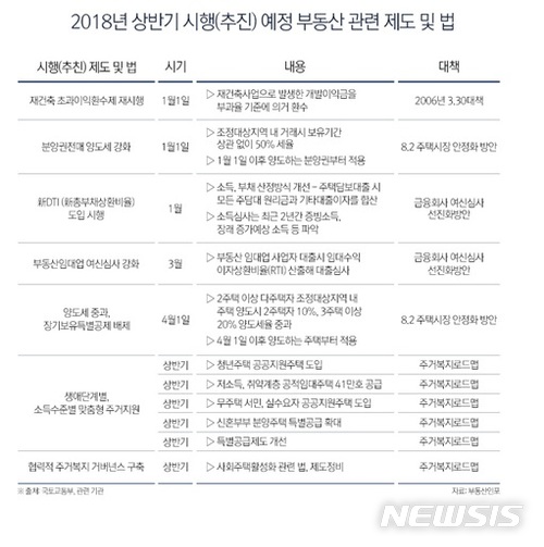 【서울=뉴시스】이승주 기자 = 내년 1월부터 재건축 이후 시세 상승분의 일부를 거둬들이는 '초과이익 환수제'가 부활한다. 또 차주의 상환 능력 심사를 한층 더 강화해 대출 한도를 정하는 신DTI(총부채상환비율)가 적용된다