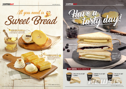 【서울=뉴시스】박정규 기자 = 커피베이는 지난 14일부터 스페셜 허니 브레드 메뉴인 '슈크림 허니 브레드'와 '고구마 치즈 허니 브레드', 토스트 메뉴인 '버터 카야 토스트'를 선보였다고 18일 밝혔다.