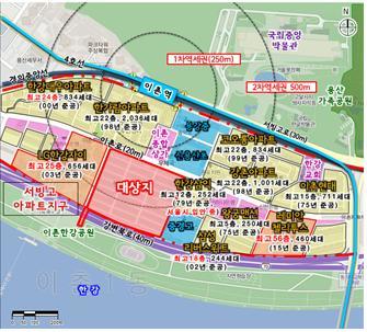 시는 "한강맨션아파트는 서빙고아파트지구 개발기본계획으로 지정된 정비구역으로 1971년도에 사용 승인돼 46년 경과된 노후·불량 공동주택단지"라며 "오랜 시간 동안 주거생활의 불편함과 주변 주거환경에 부정적 영향을 미치고 있는 구역"이라고 평했다.