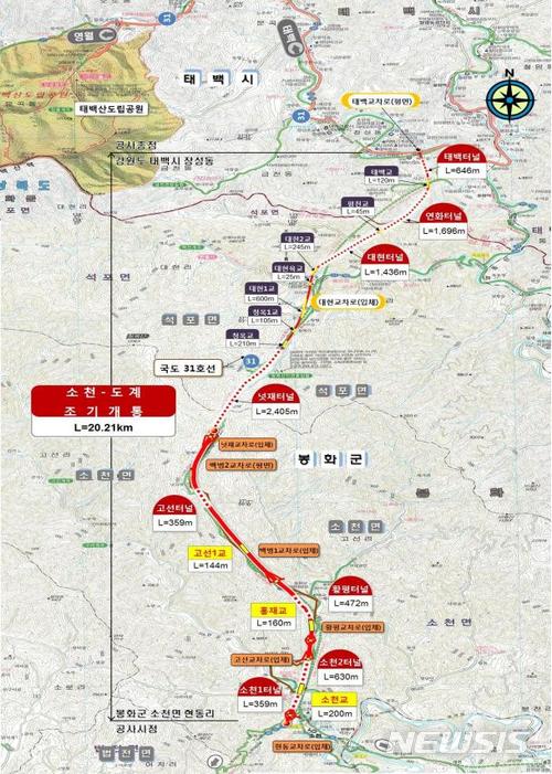 【부산=뉴시스】제갈수만 기자 = 부산지방국토관리청은 오는 4월 준공예정인 국도31호선 경북 봉화군 소천면~강원 태백시 장성동 구간 왕복 2차로 20.21㎞ 신설국도를 2018평창동계올림픽의 성공적 개최를 위해 오는 30일 오후 2시 조기개통한다고 26일 밝혔다.