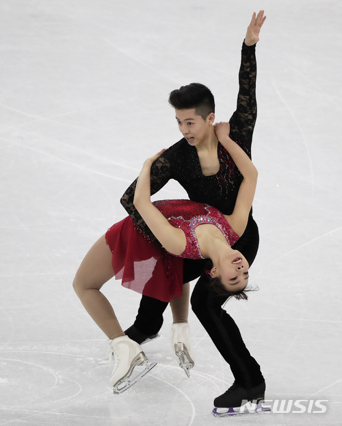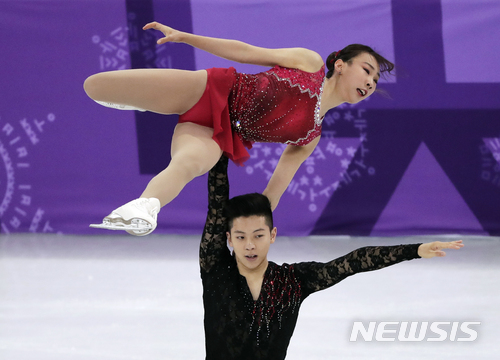 【강릉=뉴시스】 스포츠부 = 김규은(19)·감강찬(23)이 쇼트프로그램에서 제 실력을 발휘하지 못했다. 14일 오전 강릉 아이스아레나에서 열린 2018 평창 동계올림픽 피겨스케이팅 페어 쇼트프로그램에서 42.93점(기술 21.04+예술 22.89)을 받았다.
