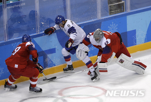 【강릉=뉴시스】 스포츠부 = 남자 아이스하키 대표팀이 올림픽 데뷔 경기에서 체코에게 아쉽게 졌다. 백지선 감독이 이끄는 대표팀(세계 21위)은 15일 강릉 하키센터에서 열린 2018 평창동계올림픽 A조 예선 1차전 체코(6위)와 경기에서 1-2(1-2, 0-0, 0-0)로 패했다.
