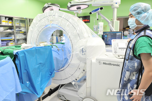신경외과 김긍년 교수팀은 오랫동안 척추간협착증세로 하지방사통을 겪고 있는 60대 남성에게 O-ARM O2와 내비게이션을 활용한 수술을 최근 시행했다.