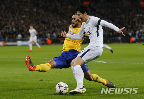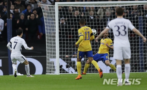 【서울=뉴시스】 권혁진 기자 = 손흥민이 세계 최고 골키퍼인 잔루이지 부폰을 뚫고 득점포를 가동했다. 하지만 토트넘 핫스퍼(잉글랜드)는 유벤투스(이탈리아)에 막혀 유럽 정상을 향한 도전을 멈췄다.