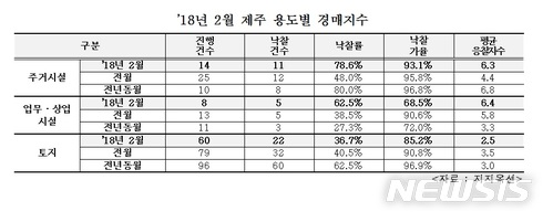 이창동 지지옥션 선임연구원은 "그동안 제주 경매시장에는 무조건 오른다는 분위기가 형성되면서 '묻지마 투자'에 나서는 이들이 많았다"며 "이에 가격과 경쟁률이 높은 수준을 이어갔고 과열양상까지 보였다"고 설명했다.