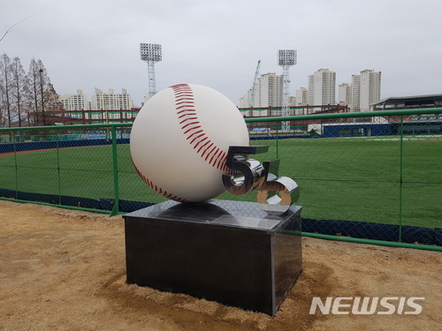 【서울=뉴시스】 문성대 기자 = 한국 야구의 레전드 스타 이승엽(42)의 56호 홈런 조형물이 시민의 품으로 돌아왔다. 리모델링을 마친 대구 시민운동장 야구장(옛 대구구장)의 개장 행사가 17일 열린다.