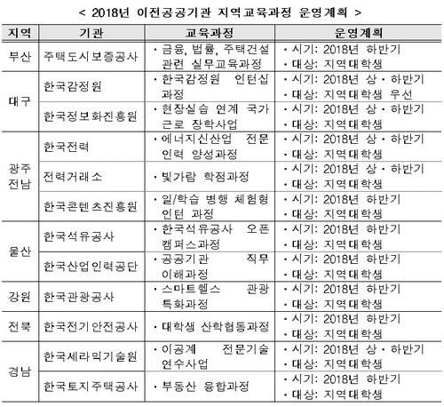 【서울=뉴시스】최희정 기자 = 혁신도시로 이전한 공공기관들이 지역 대학생들의 진로 모색 기회를 제공하고 인재 양성을 도모하기 위한 지역교육과정(오픈캠퍼스)을 운영한다.
