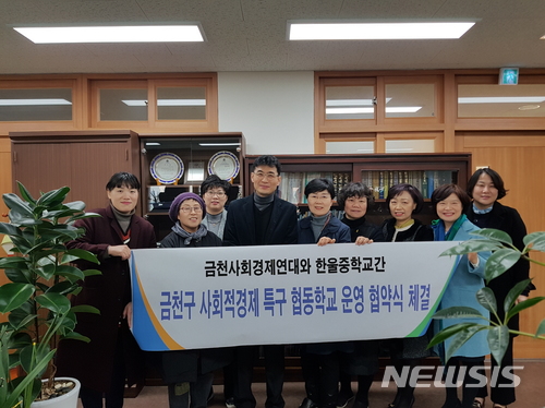 【서울=뉴시스】박대로 기자 = 서울 금천구(구청장 차성수)는 관내 사회적경제 기업들로 구성된 '사회적협동조합 금천사회경제연대'와 문성중, 한울중이 사회적경제 협동학교 운영 업무협약을 체결했다고 20일 밝혔다.