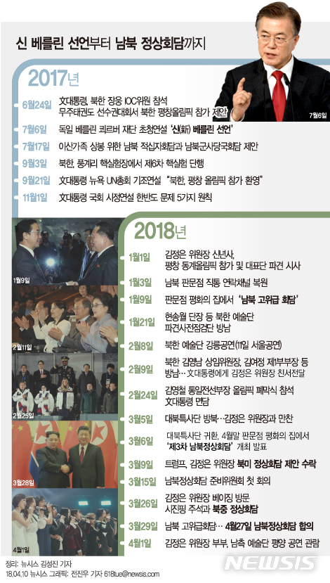 이로부터 10개월 뒤인 4월27일, 한반도 정세의 분수령이 될 남북 정상회담이 열릴 예정이다. 국제사회는 11년 만에 이뤄지는 남북 정상 간의 대화에서 한반도의 '운명의 봄'이 열릴지 촉각을 곤두세우고 있다.