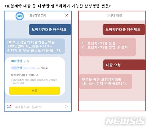 【서울=뉴시스】이승주 기자 = 삼성생명이 보험 계약조회부터 대출까지 가능한 인공지능(AI) 챗봇을 출시했다. 기존 1세대 챗봇과 달리 구체적인 질문에도 답변이 가능한 것이 특징이다.