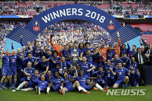 【서울=뉴시스】박지혁 기자 = 잉글랜드 프로축구 프리미어리그(EPL)의 첼시FC가 맨체스터 유나이티드를 꺾고 잉글랜축구협회(FA)컵 우승을 차지했다.