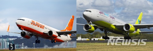 【서울=뉴시스】김동현 기자 = 국내 저비용항공사(LCC) 업계 1위 자리를 놓고 치열한 경쟁을 벌이고 있는 제주항공과 진에어가 올해 어떤 성적표를 거둘 지 업계의 관심이 높다.
