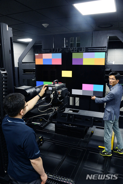 취재 편의상 커튼을 치우고 조명등을 켰지만 화질 자동 측정 시스템 주변으로는 빛을 가리는 암막 커튼이 2중으로 쳐져 있다. 1차로 창문을 막고, 2차로 측정 시스템 주변을 막는다. 완벽한 암실환경이어야 정확한 측정이 가능하기 때문이다.