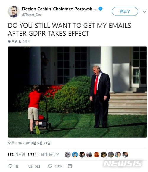 NYT는 이날 "(GDPR 도입으로) 끝까지 읽어야할 복잡한 법률들이 많이 있다"며 "이런 이메일을 즉시 삭제하거나 (당신의 데이터가 안전하지 않다는) 경보를 바로 꺼버리려는 유혹에서 벗어나야 한다"고 조언했다.
