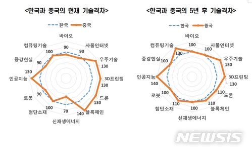 중국은 4차 산업혁명 기술에 대한 발전 속도가 매우 빨라 바이오, 사물인터넷, 신재생에너지, 로봇, 증강현실의 기술수준은 2023년이 되면 한국과 비슷한 수준으로 발전하고, 경합 분야였던 첨단소재와 컴퓨팅 기술은 한국을 추월할 것으로 예측됐다.