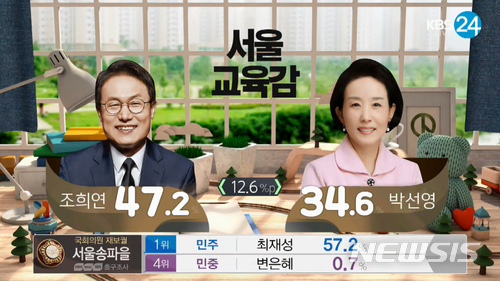 【서울=뉴시스】강세훈 기자 = 13일 서울시교육감 선거 출구조사에서 재선에 도전하는 조희연 후보가 40% 후반대로 우세할 것으로 예측됐다.