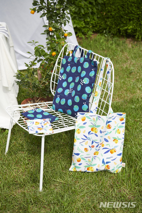 ‘아몬드 나무 패턴 에코백’은 발랄한 아몬드 나무 패턴에 팝한 컬러감이 어우러져 캐주얼한 룩에 매치해 포인트 아이템으로 활용할 수 있다. 가방 내부에는 기본 안주머니가 있어 소지품 보관이 용이하며 튼튼한 내구성을 위해 가방 끈을 이중 봉제했다. 에코백과 함께 사용할 수 있는 ‘아몬든 나무 패턴 파우치’는 아몬드 나무 패턴이 화사하게 프린트 되었으며 휴대가 간편해 실용적이다.