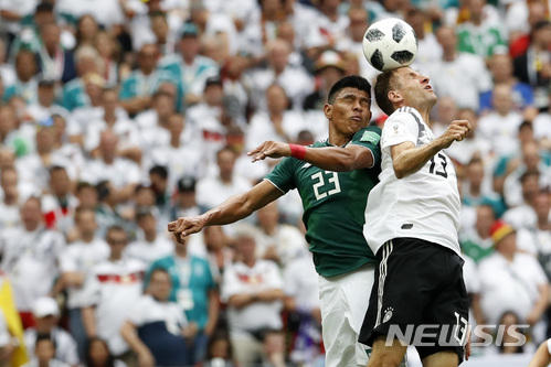 【서울=뉴시스】 오종택 기자 = 대한민국과 같은 조의 멕시코가 '디펜딩 챔피언'이자 강력한 우승 후보 독일을 격파하는 이변을 연출했다. 독일의 독주 속에 2위로 16강 진출을 노렸던 한국으로서는 최악의 시나리오다.