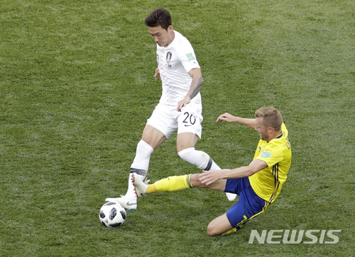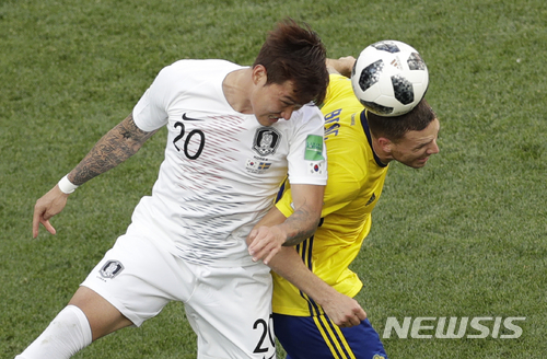 【니즈니노브고로드(러시아)=뉴시스】 권혁진 기자 = 축구대표팀 중앙 수비수 장현수(FC도쿄)는 스웨덴전이 끝난 뒤 아쉽다는 말을 수차례 반복했다.