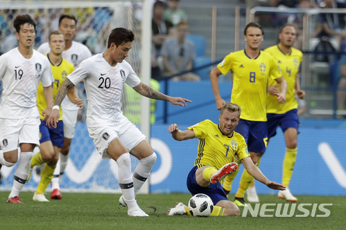 신태용 감독이 이끄는 한국 축구대표팀은 18일(현지시간) 러시아 니즈니 노브고로드 스타디움에서 열린 2018 러시아 월드컵 조별리그 F조 1차전 스웨덴과 경기에서 0-1로 졌다.
