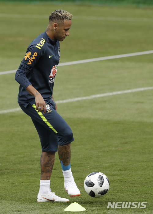 【서울=뉴시스】 오종택 기자 = 발목 통증으로 훈련을 정상적으로 소화하지 못한 브라질의 간판 공격수 네이마르(26·파리 생제르맹)가 코스타리카전을 이틀 앞두고 훈련장에 복귀했다.