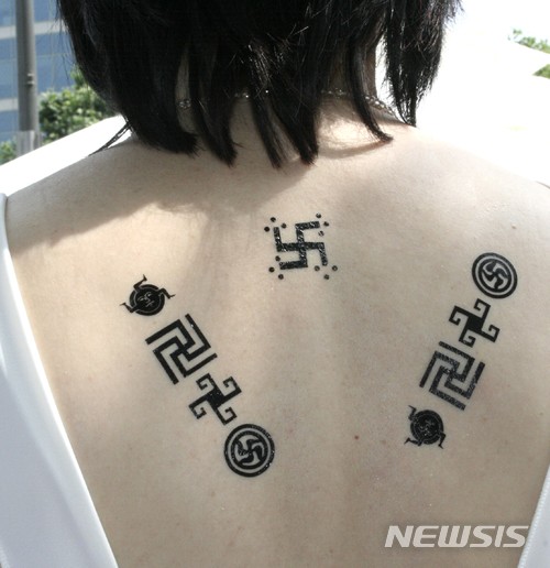 【서울=뉴시스】 김정환 기자 = 국제라엘리안무브먼트가 23일 각국에서 '스와스티카(卍) 부흥의 날' 캠페인을 벌였다. 우리나라에서는 한국라엘리안무브먼트가 이날 오후 서울 지하철 2호선 삼성역 주변에서 '시작도 끝도 없이 무한한 우주에 고정불변한 것은 없으며 존재하는 모든 것은 새로 생겨 나거나 사라지지 않고 그 형태만 바뀌면서 영원히 순환한다'는 스와스타키의 참뜻을 알렸다.