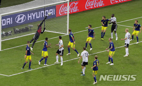 독일은 24일(현지시간) 러시아 소치의 피시트 올림픽 스타디움에서 열린 스웨덴과의 2018 국제축구연맹(FIFA) 러시아월드컵 F조 조별리그 2차전에서 1-1로 팽팽하던 후반 추가시간 크로스의 기적 같은 역전 결승골이 터지면서 2-1로 이겼다.