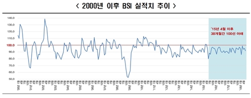 6월 실적(91.9), 38개월간 100선 아래…2000년 이후 최장기간 부진