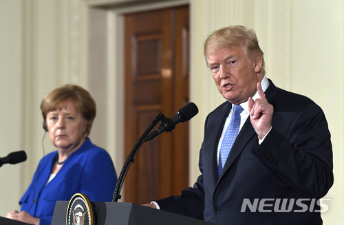 【베를린=AP/뉴시스】이재준 기자 = 앙겔라 메르켈 독일 총리는 5일 미국의 자동차 관세 인상을 회피할 목적으로 유럽 측의 관세 인하에 관해 미국 측과 협상에 나설 용의가 있다고 밝혔다.