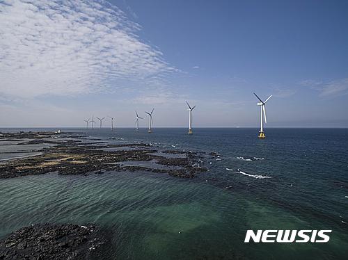 【세종=뉴시스】박상영 기자 = 백운규 산업통상자원부 장관이 18일 국내 최초 상업용 해상풍력단지인 탐라해상풍력을 방문했다.