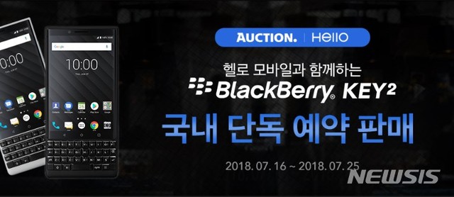 【서울=뉴시스】최현호 기자 = 옥션과 G마켓은 25일까지 알뜰폰 헬로모바일과 손잡고 ‘블랙베리 키2(Blackberry KEY2)’ 예약 판매를 진행한다고 20일 밝혔다.