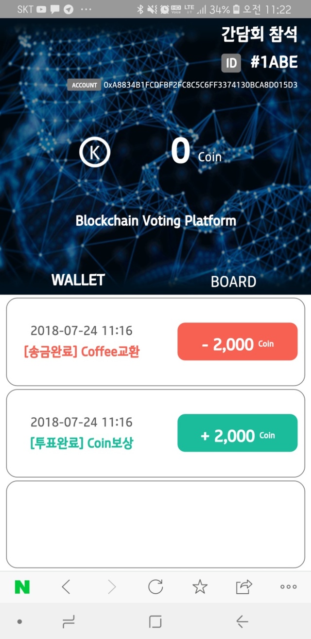 실제로 이날 KT는 'K-token(토큰) 환전소'를 이용해 포인트로 커피를 구매하는 방법을 시연했다. KT하면 떠오르는 이미지 3가지 중 하나를 골라 스마트폰 웹상에서 투표하면 2000포인트를 줬다. 이 포인트를 활용해 커피를 구매하는 방식이었다.
