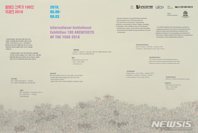 【서울=뉴시스】 조수정 기자 = 한국건축가협회(회장 강철희)가 10월10일 제주도립미술관에서 ‘올해의 건축가 100인 국제전’을 개막한다. 세계 건축계 네트워크를 확장하고 국내외 건축가들의 교류를 확대하기 위해 한국건축가협회가 단독 전시분야 세계 최초로 국제건축가연맹(UIA)의 공식 승인을 받은 국제전시다.