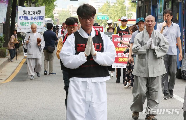 조계종 사노위원장인 혜찬스님은 "정부가 폭염이 재난이라고 했는데 해고 노동자는 재난보다 더한 일들을 겪었다"며 "(오늘의 오체투지가) 정부가 적극 개입해 문제를 풀어가는 시작이 됐으면 좋겠다"고 했다.
