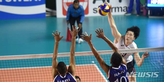 【서울=뉴시스】 권혁진 기자 = 한국 남자 배구대표팀이 네팔을 가볍게 제압했다.