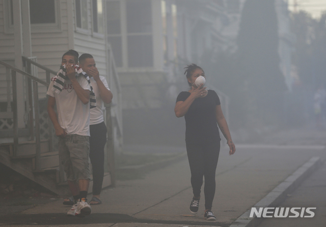 【로렌스=AP/뉴시스】오애리 기자 = 미국 보스턴 북부 인근지역에서 13일(현지시간) 발생한 가스 폭발사고로 18세 소년 1명이 사망하고, 최소 40여채의 주택들이 불탔다.