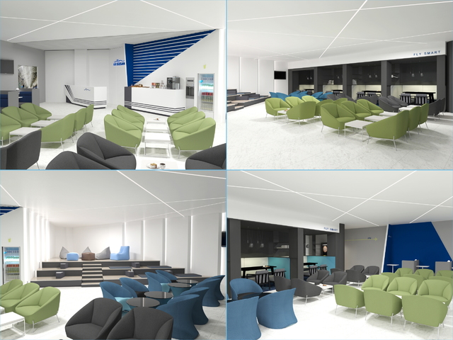 에어부산 라운지는 심플하고 실용적인 감성의 “스마트한 여행의 시작”을 콘셉트로 디자인되었다. 내부 공간은 최근 개별여행 및 가족여행, 혼행족이 늘고 있는 여행 추세에 따라 개인 독립공간과 가족 단위의 공간을 중심으로 구성하였다. 또한 국내 항공사 라운지 최초로 빈백(beanbag)이 비치된 좌식 구조의 오픈 공간도 마련했다. 무료 와이파이 서비스 및 무선 충전이 가능한 좌석도 비치하여 출발 전 스마트 기기로 여행지 정보를 자유롭게 검색할 수 있도록 했다.