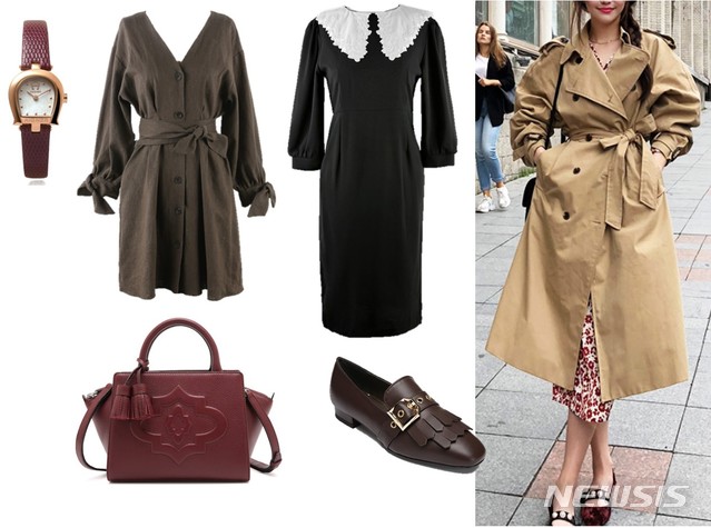 원피스에는 가방과 구두, 시계를 비슷한 톤으로 매치하면 통일감 있는 스타일을 완성할 수 있다. 반대로 레드 등 강렬한 색상으로 매치해도 포인트를 주는 패션을 연출할 수 있다.