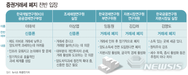 임동원 한국경제연구원 부연구위원도 증권거래세 인하 후 장기적으로 폐지하는 것에 찬성 의견을 냈다. 그는 "세금이 줄면 주식 거래가 늘어 자본시장이 활성화 된다"고 밝혔다.