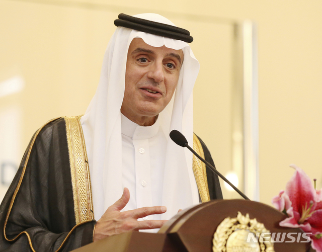 【두바이(아랍에미리트)=AP/뉴시스】유세진 기자 = 무함마드 빈 살만 사우디아라비아 왕세자는 사우디 언론인 자말 카슈끄지 살해 사건과는 "절대적으로" 아무 관련도 없다고 아델 알-주베이르 사우디 외무장관(사진)이 15일 기자회견에서 강조했다.