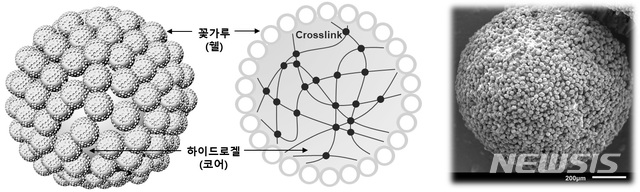 꽃가루를 유화제로 활용해 친수성인 하이드로젤 방울이 고르게 분산된 유화액을 만든 후, 이에 자외선 빛을 가함으로써 크기가 제어된 코어-쉘(core-shell) 형태의 입자를 손쉽게 대량 생산할 수 있었다.