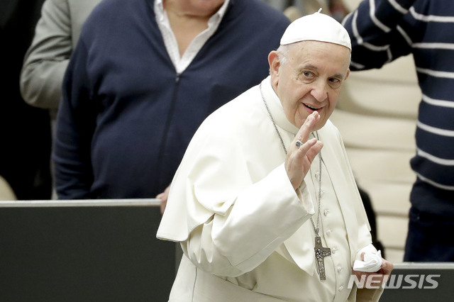 【바티칸시티=AP/뉴시스】유세진 기자 = 프란치스코 교황(사진)이 2019년 2월 기독교도들과 무슬림들 간 대화와 중동 지역의 평화를 촉진하기 위해 아랍에미리트(UAE)를 방문할 계획이라고 바티칸 당국이 6일 발표했다.