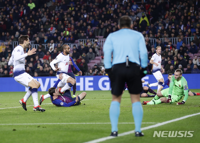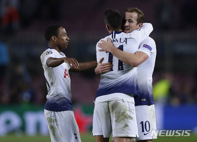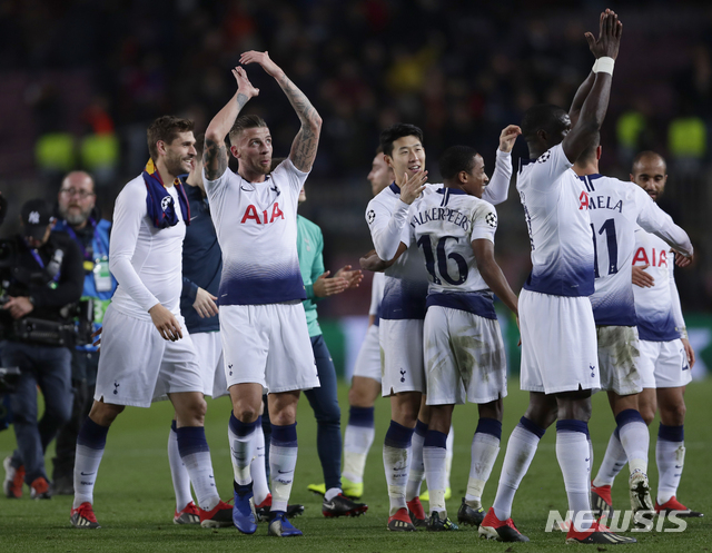 【서울=뉴시스】류난영 기자 = 잉글랜드 프리미어리그 토트넘 홋스퍼가 FC바르셀로나를 상대로 극적인 동점을 만들어 내면서 챔피언스리그 16강 진출에 성공했다.