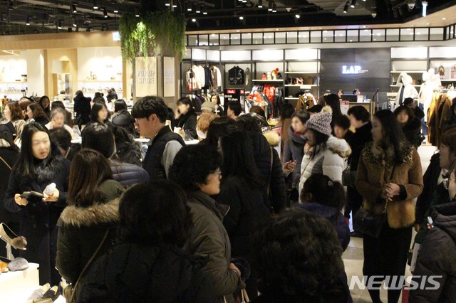 【서울=뉴시스】표주연 기자 = 최악의 미세먼지가 한반도를 덮고 있는 가운데 야외나들이 대신 복합쇼핑몰을 찾는 시민들이 늘고 있다.