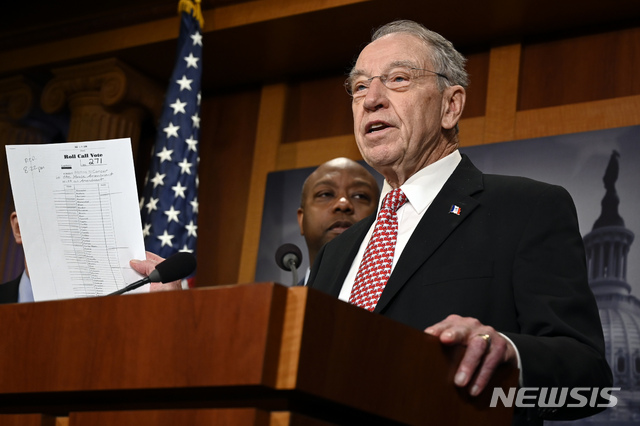 FT에 따르면 친 트럼프계인 공화당 소속 척 그래슬리(아이오와) 상원의원은 17일 의회에서 진행된 브리핑에서 이같이 말했다.
