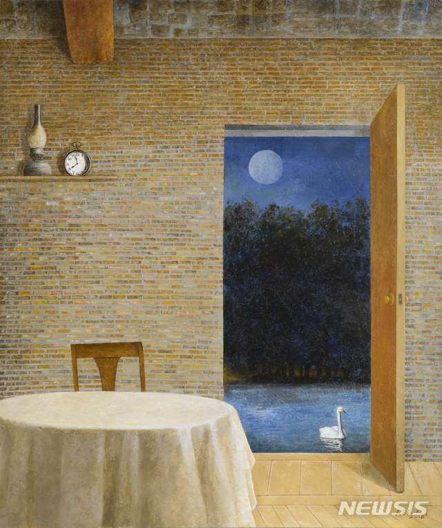 사물이 의인화된 수수께끼 같은 그림앞에서 "모두 좋다"고 스스로 감탄하던 그는 이렇게 말했다. "인간은 다 외로워요. 내 그림은 보이지 않는 상상의 세계를 펼쳐 보기를 바라는 마음이 담겨 있어요." 전시는 3월10일까지.