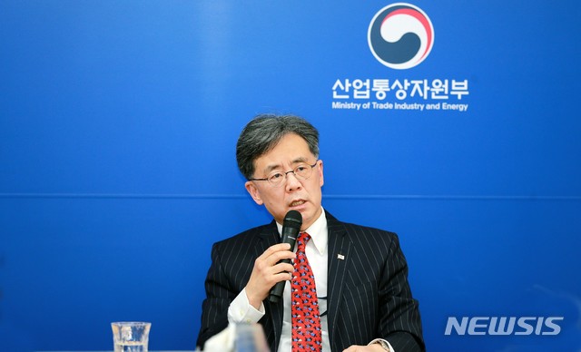 【세종=뉴시스】김현종 산업통상자원부 통상교섭본부장이 13일 오후 정부세종청사에서 미국 출장 결과 관련 설명회를 열었다. 2019.02.13. (사진=산업부)