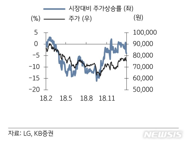 【서울=뉴시스】김동현 기자 = KB증권은 25일 LG(003550)에 대해 "주당 배당금 상향으로 ROE가 지난해 추정치보다 0.4% 포인트 개선됐다"며 투자의견을 매수, 목표주가를 9만5000원으로 상향했다.