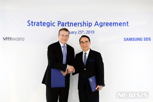 【서울=뉴시스】최선윤 기자 = 삼성SDS는 25일 미국 VMware와 전략적 제휴를 맺고 디지털 업무환경 혁신 사업을 공동 전개하기로 했다고 26일 밝혔다.